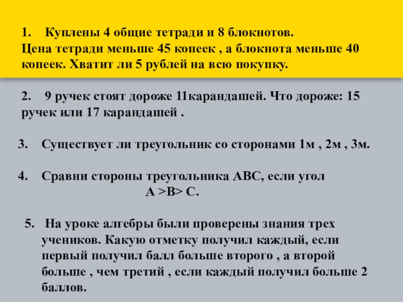 1) -5 < -3 2) -5 > -3 3) 5 > -3