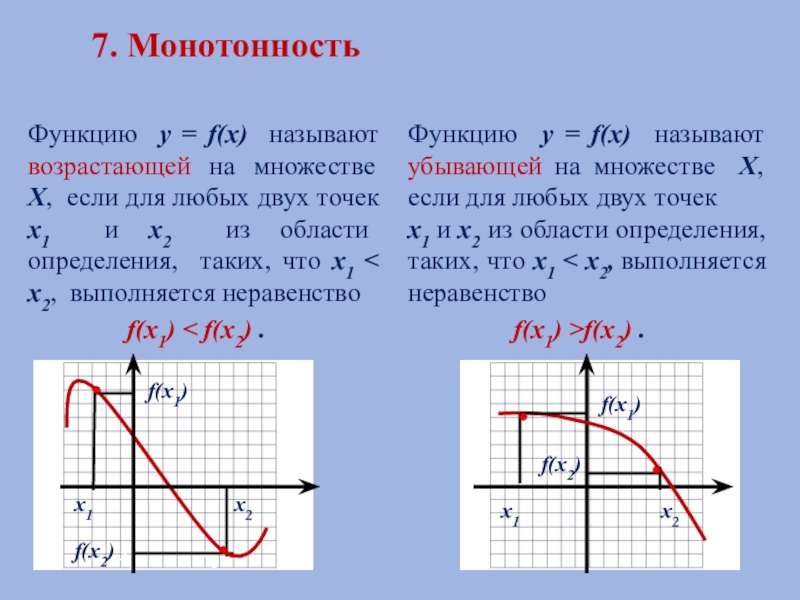 х1 и х2 из области определения, таких, что х1 < х2, выполняется неравенство