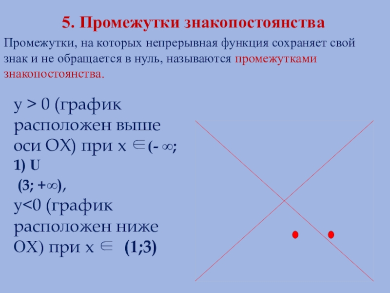 y > 0 (график расположен выше оси ОХ) при х (- ∞; 1) U