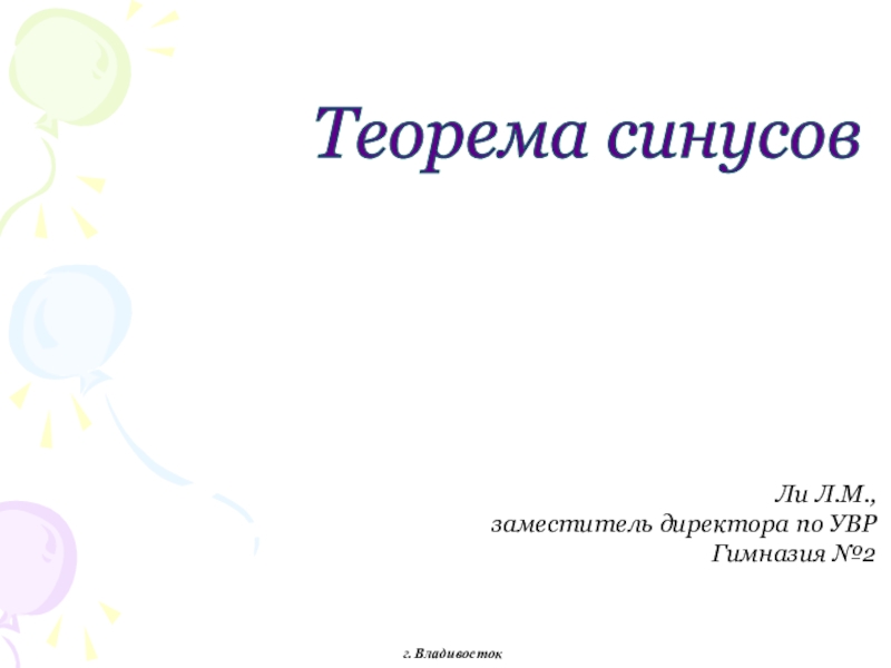 Теорема синусов Ли Л.М., заместитель директора по УВР Гимназия №2г. Владивосток