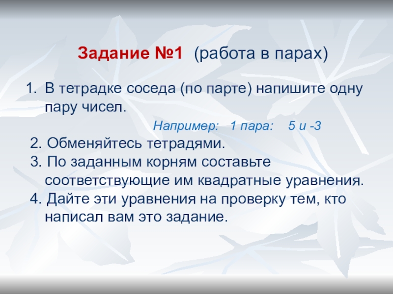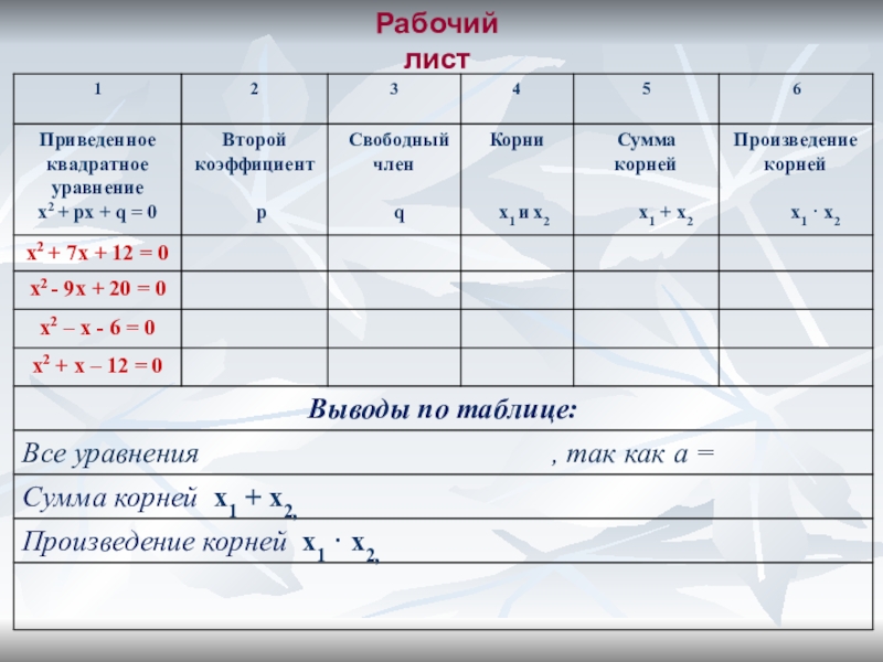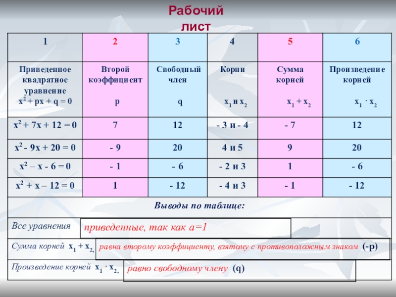 2. Найти сумму и произведение корней квадратного уравнения, не решая его.