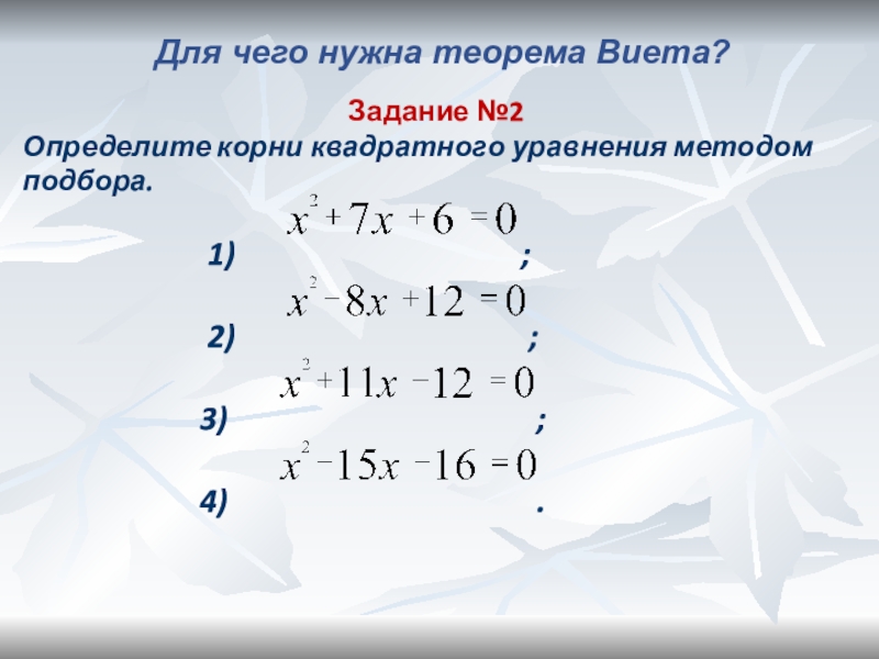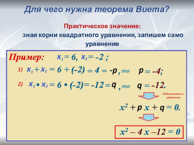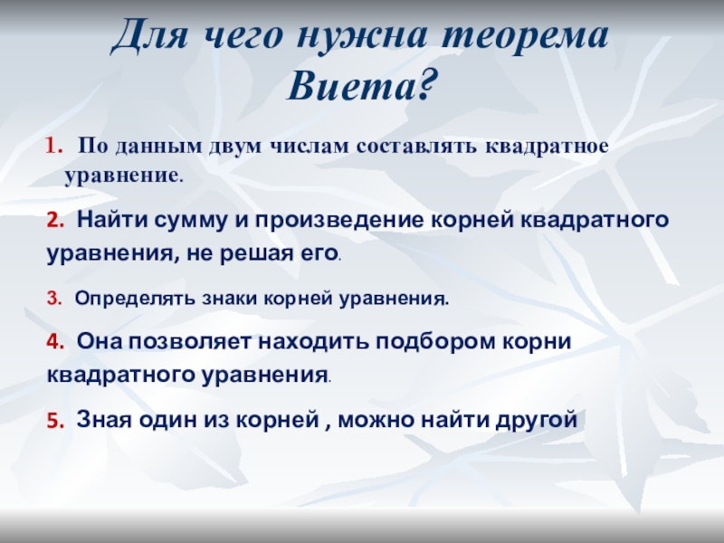 4. Она позволяет находить подбором корни квадратного уравнения.