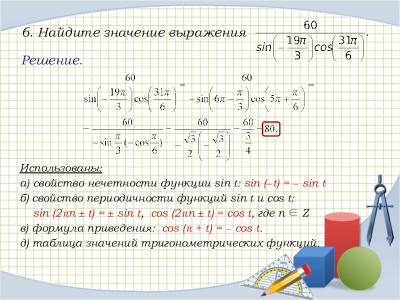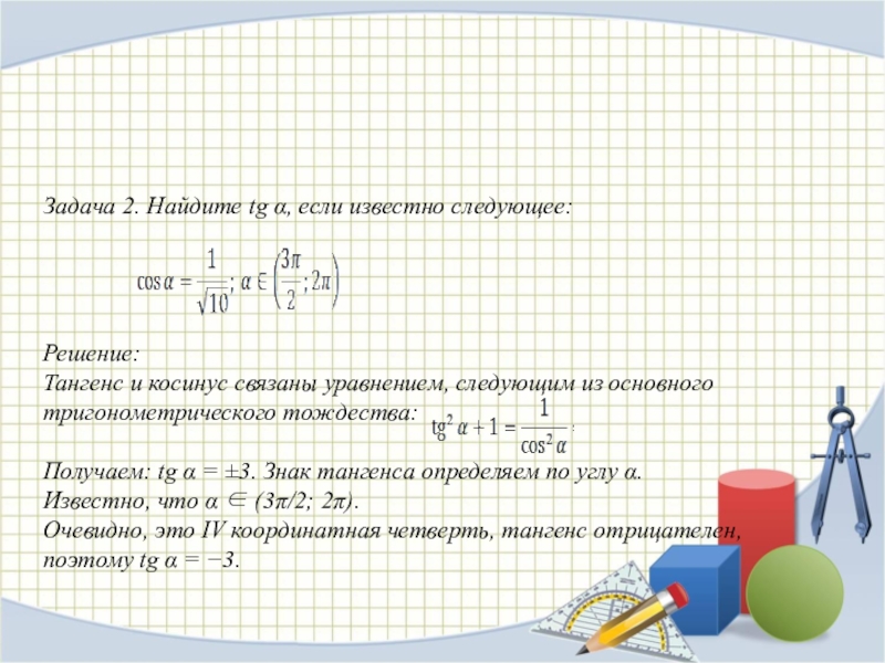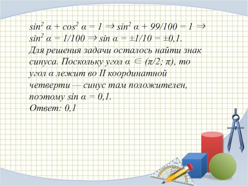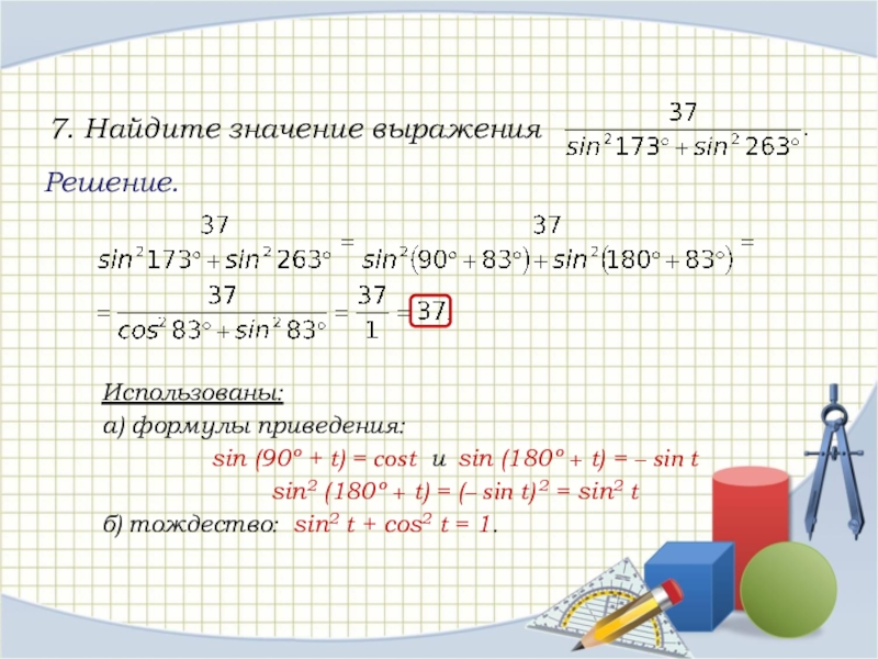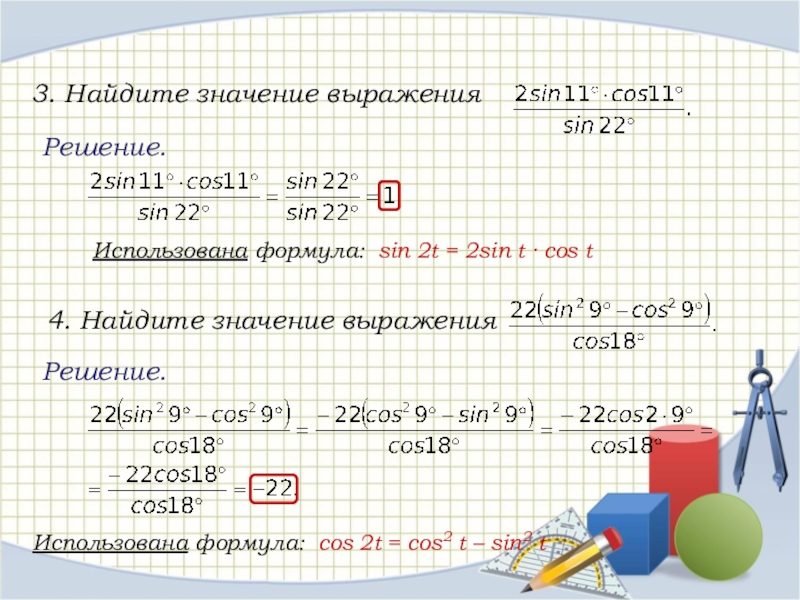 Использована формула: сos 2t = cos2 t – sin2 t