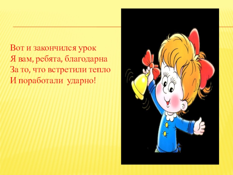Вот и закончился урокЯ вам, ребята, благодарнаЗа то, что встретили теплоИ поработали ударно!