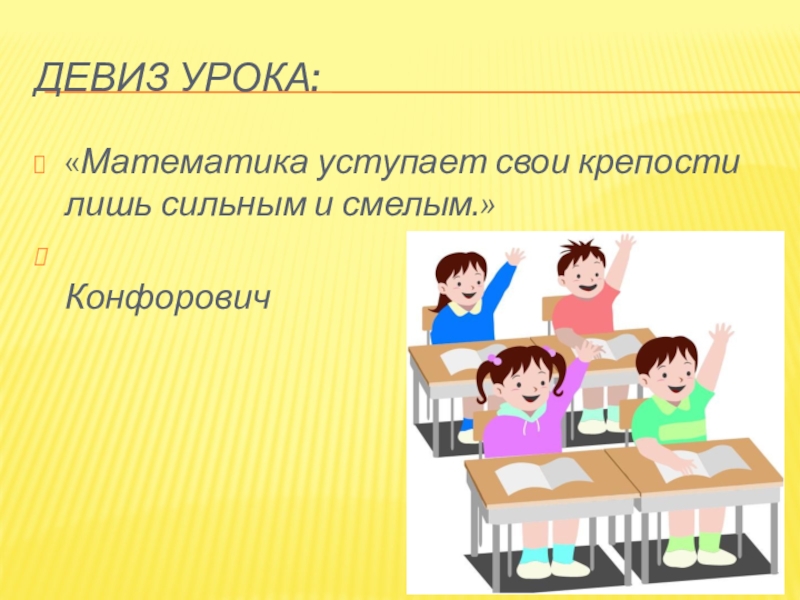 Девиз урока: «Математика уступает свои крепости лишь сильным и смелым.»