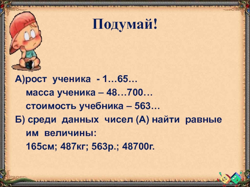 3) выразить число, полученное в ответе, в более крупных мерах (если это возможно)
