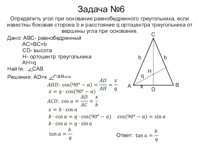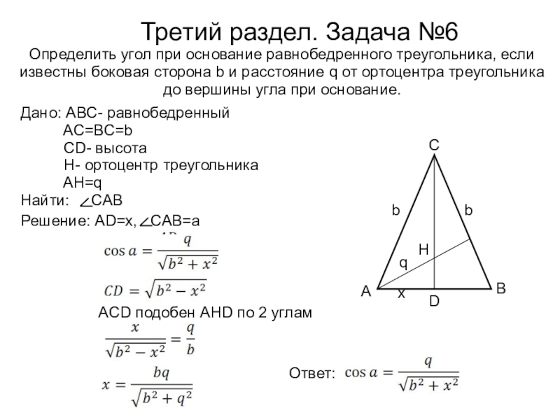 Решение: AD=x, CAB=a