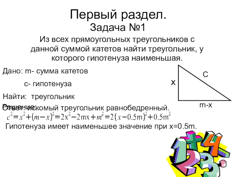Дано: m- сумма катетов