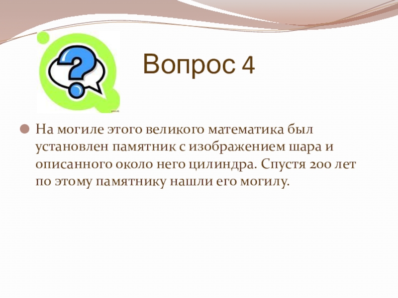 шара и описанного около него цилиндра. Спустя 200 лет по этому памятнику нашли его могилу.