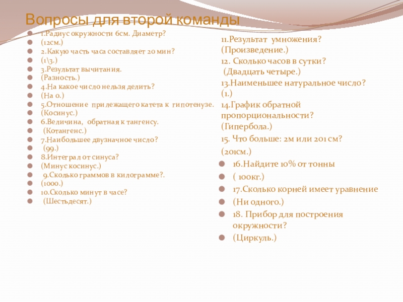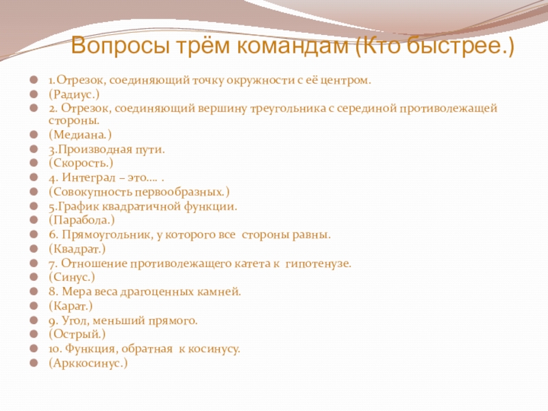 2.Употребляя соответствующие математические термины, упростить следующие фразы: