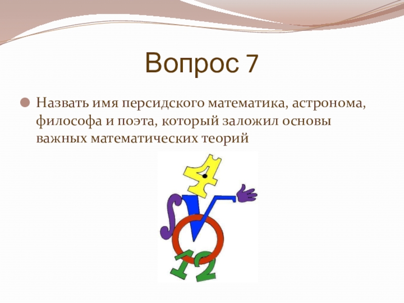 Назвать имя персидского математика, астронома, философа и поэта, который заложил