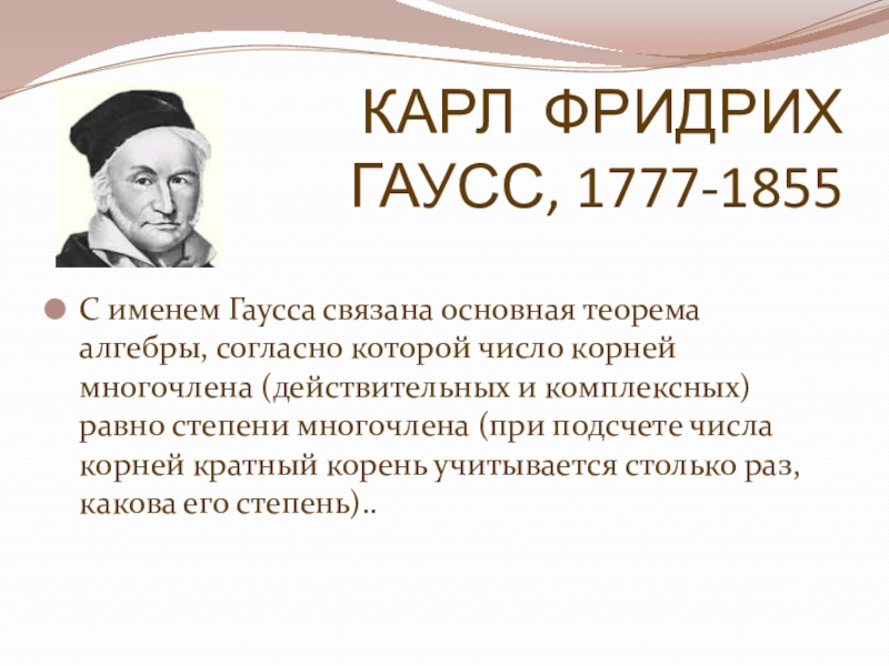 Слайд 16КАРЛ ФРИДРИХ ГАУСС, 1777-1855