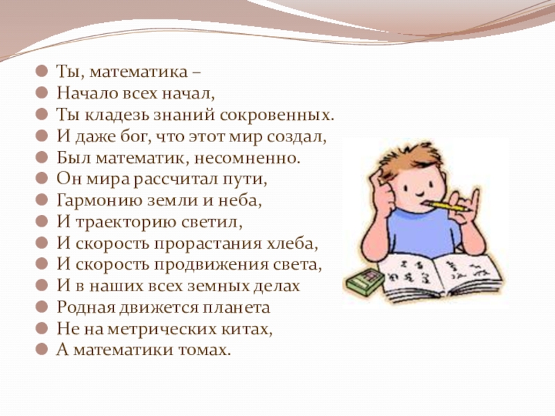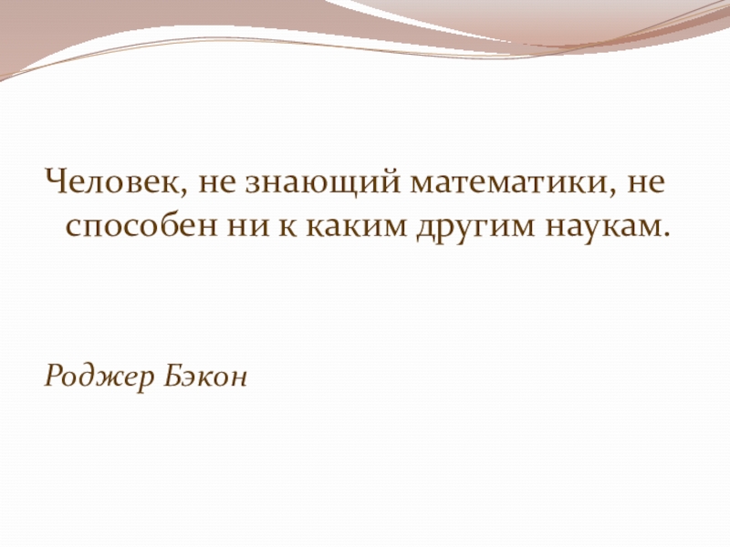 Слайд 2Человек, не знающий математики, не способен ни к каким другим наукам.