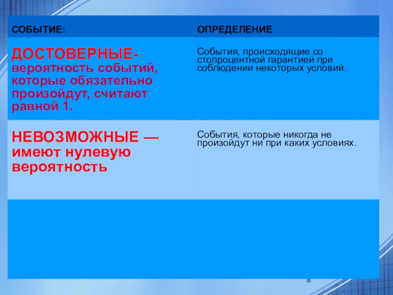 Слайд 6ВЕРОЯТНОСТЬ СОБЫТИЯ