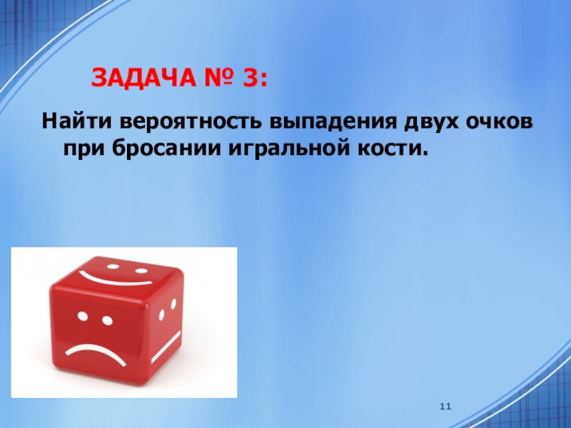 ЗАДАЧА № 3:Найти вероятность выпадения двух очков при бросании игральной кости.