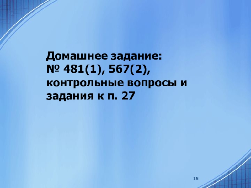 № 481(1), 567(2), контрольные вопросы и задания к п. 27