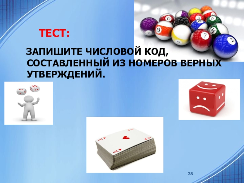 ТЕСТ:  ЗАПИШИТЕ ЧИСЛОВОЙ КОД, СОСТАВЛЕННЫЙ ИЗ НОМЕРОВ ВЕРНЫХ УТВЕРЖДЕНИЙ.