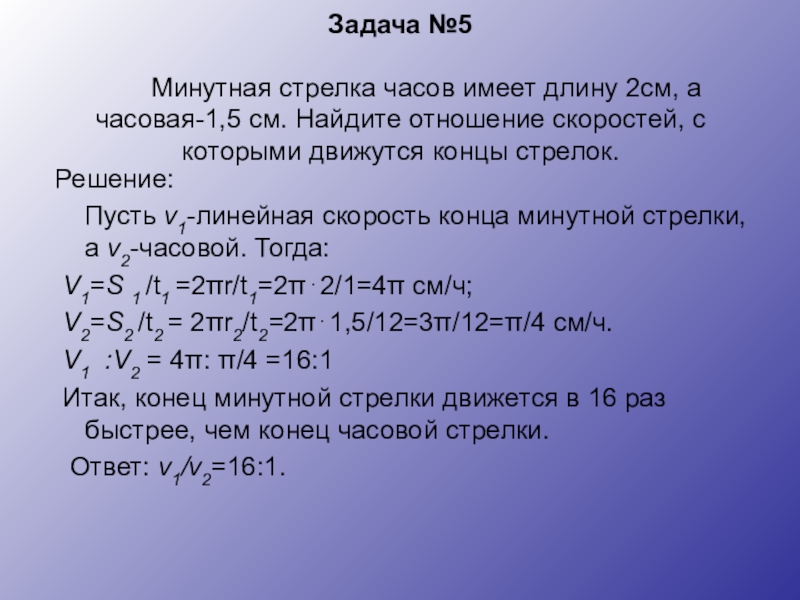 Итак, конец минутной стрелки движется в 16 раз быстрее, чем конец часовой стрелки.