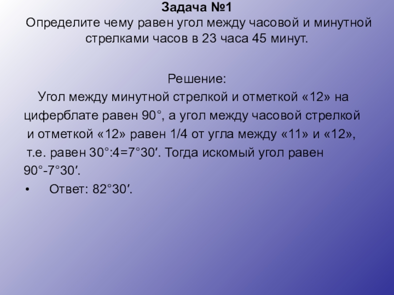 т.е. равен 30°:4=7°30′. Тогда искомый угол равен