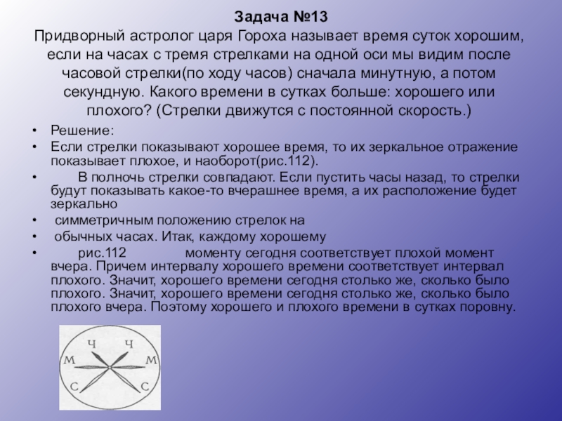 Если стрелки показывают хорошее время, то их зеркальное отражение показывает плохое, и наоборот(рис.112).