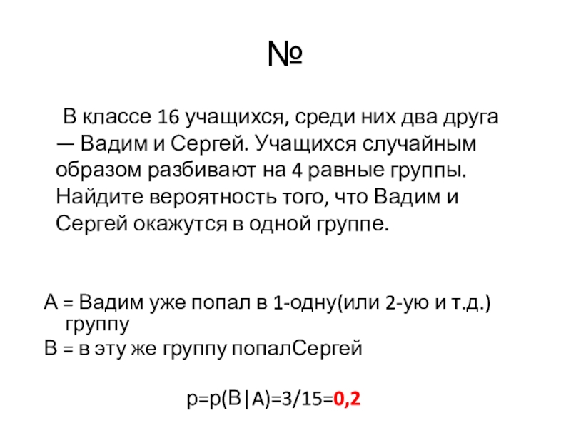 А = Вадим уже попал в 1-одну(или 2-ую и т.д.) группу