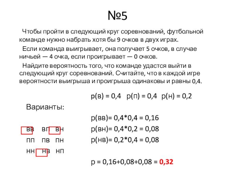 p(в) = 0,4 р(п) = 0,4 р(н) = 0,2