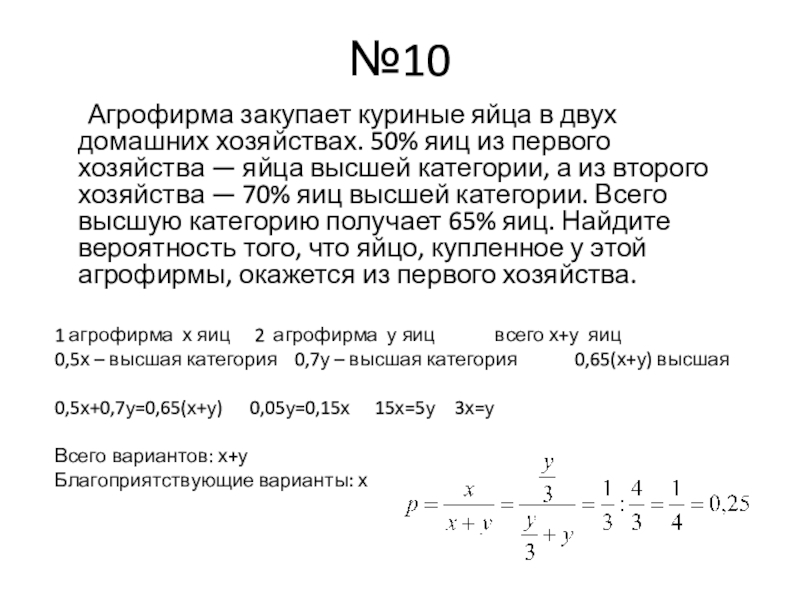 1 агрофирма х яиц 2 агрофирма у яиц всего х+у яиц