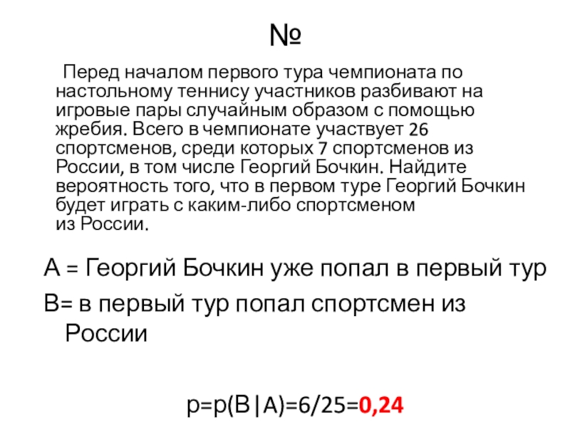 р=р(В|A)=6/25=0,24