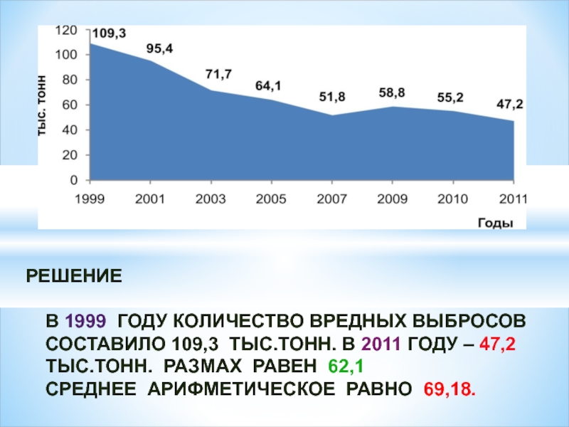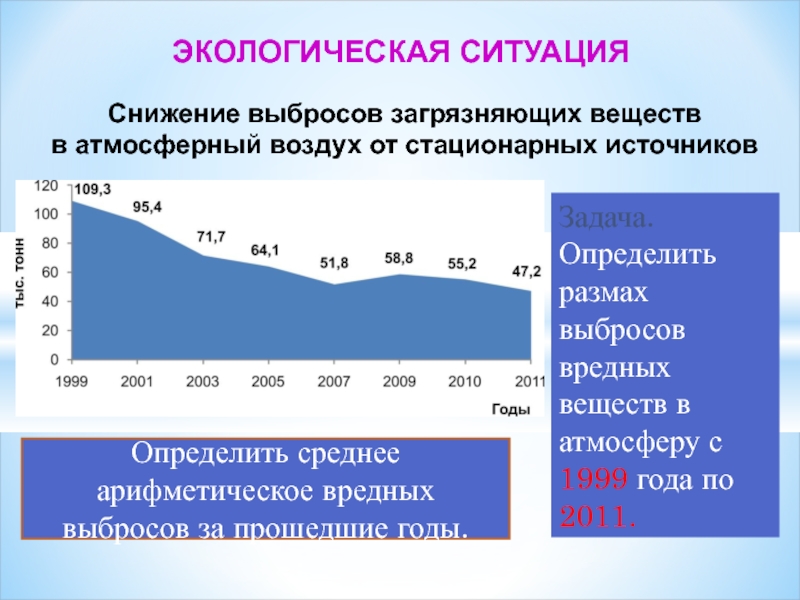 Определить среднее арифметическое вредных выбросов за прошедшие годы.