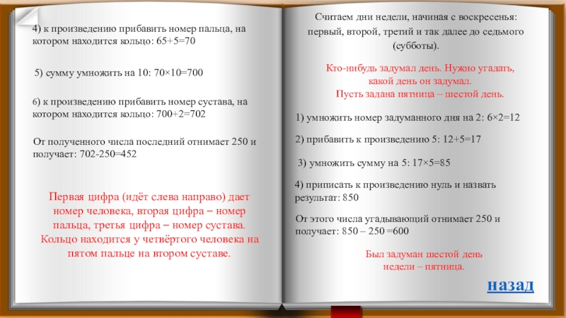 6) к произведению прибавить номер сустава, на котором находится кольцо: 700+2=702