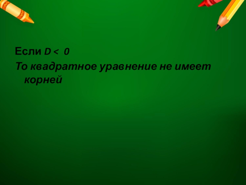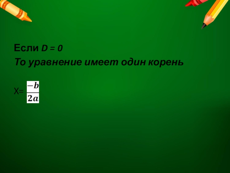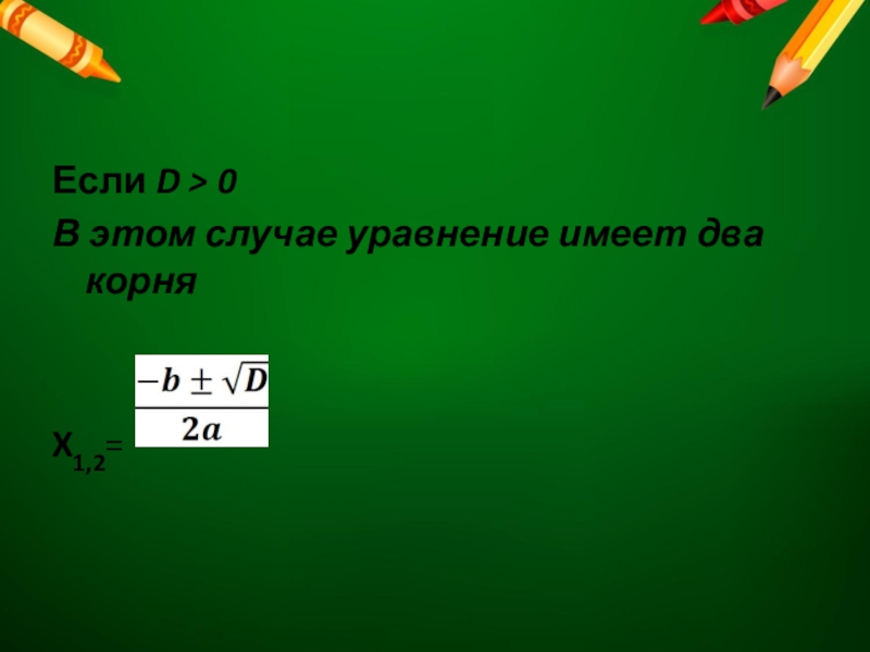 Если D  0В этом случае уравнение имеет два корняX1,2=