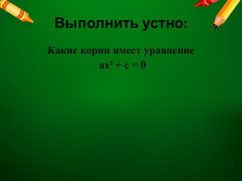 Выполнить устно:Какие корни имеет уравнение ax² + c = 0