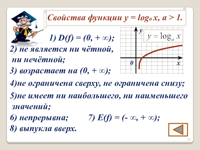 Логарифмическая функция не является ни чётной, ни