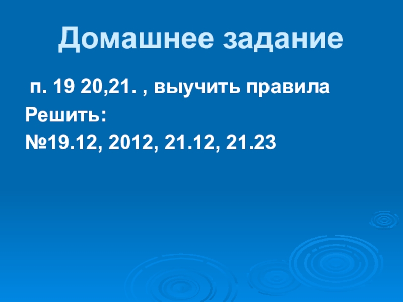 Домашнее задание п. 19 20,21. , выучить правилаРешить:№19.12, 2012, 21.12, 21.23