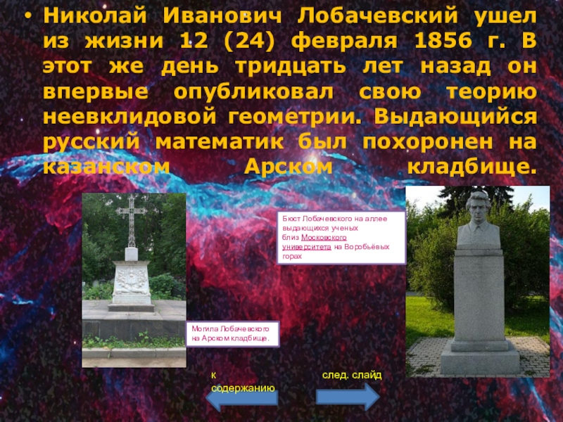 Бюст Лобачевского на аллее выдающихся ученых близ Московского университета на Воробьёвых горах