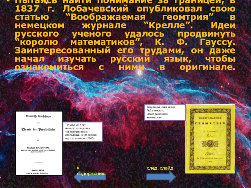 Титульный лист книги Лобачевского «Воображаемая геометрия»