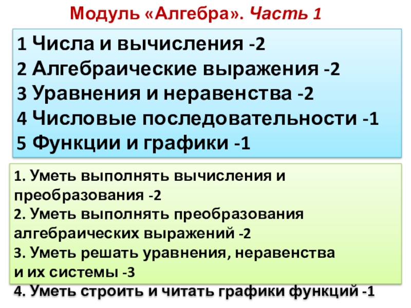 1. Уметь выполнять вычисления и преобразования -2