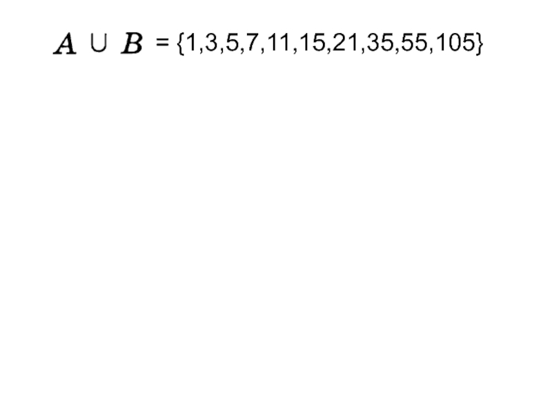 Слайд 8 = {1,3,5,7,11,15,21,35,55,105}