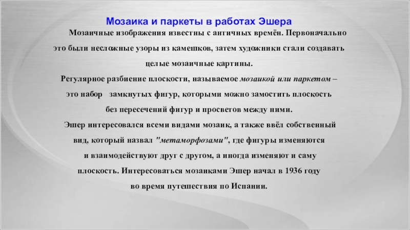 ОРНАМЕНТАЛЬНОЕ И ГЕОМЕТРИЧЕСКОЕ ИСКУССТВО МАРИУЦА ЭШЕРА