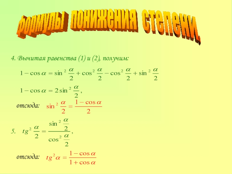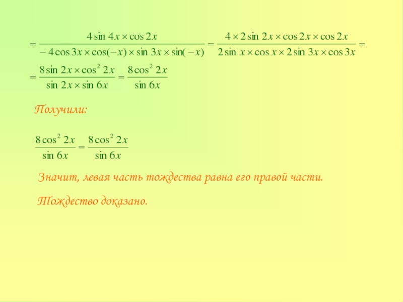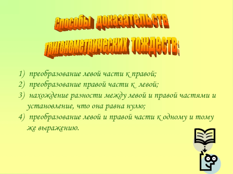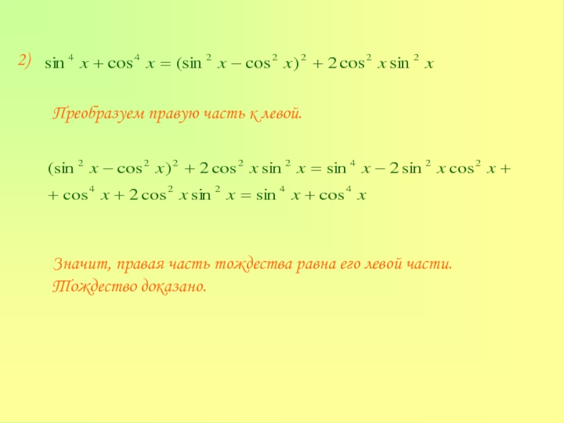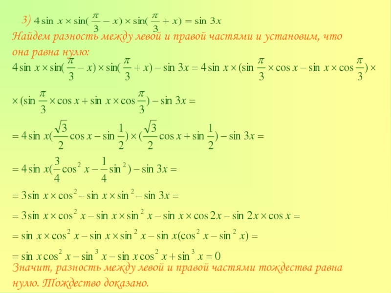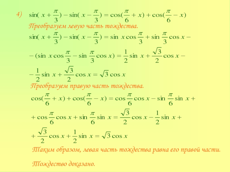тригонометрических тождеств: