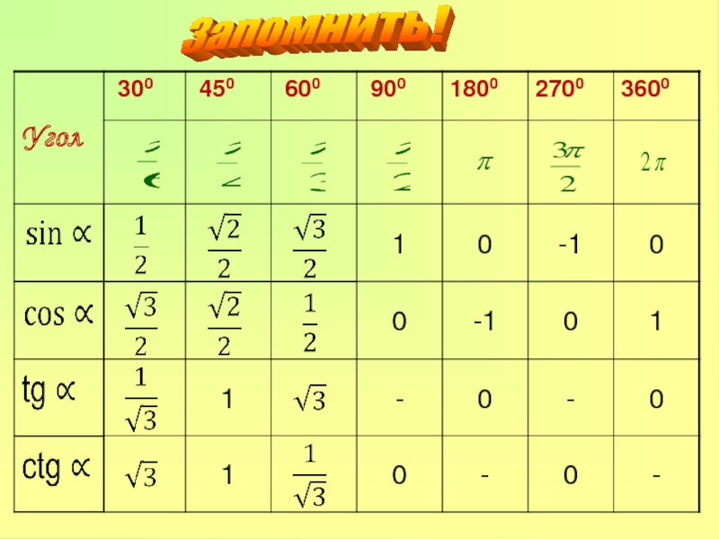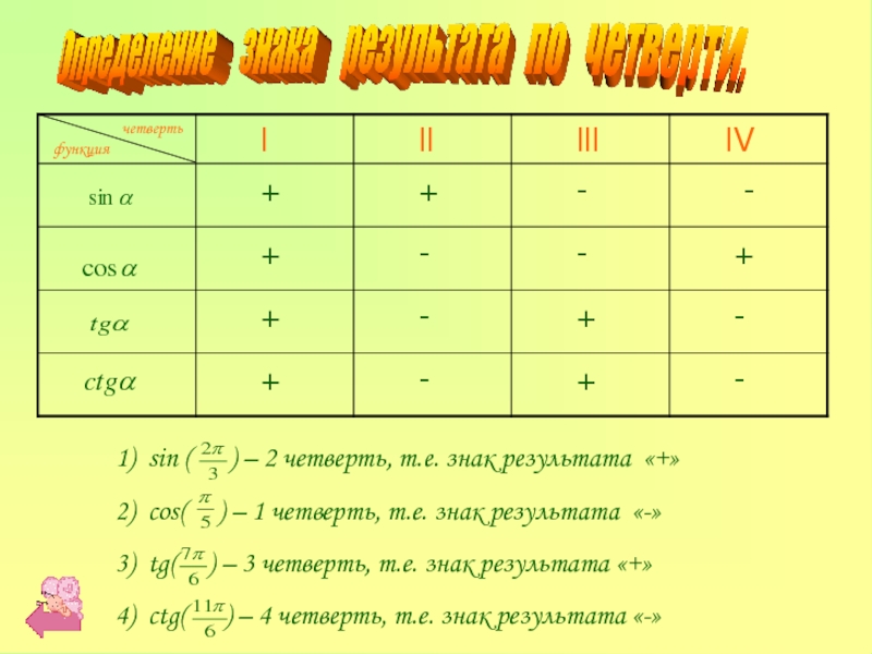 cos( ) – 1 четверть, т.е. знак результата «-»