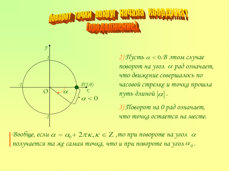Вообще, если 0 ,то при повороте на угол получается та же самая точка, что и при повороте на угол 0 .