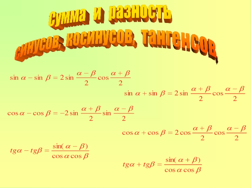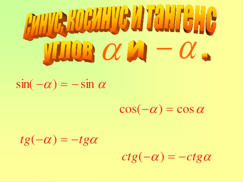 Например, 1) sin( ) = cos = 2) sin( ) = -sin =