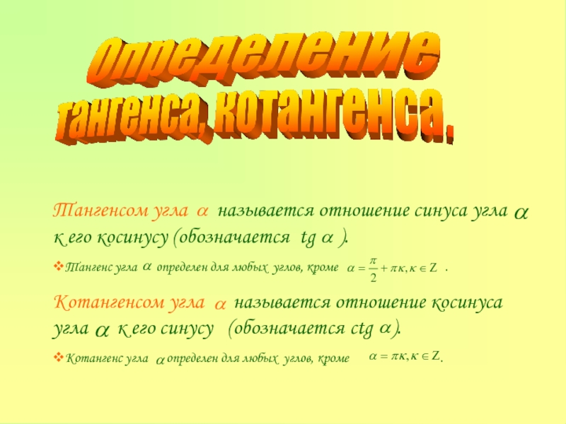 Выясним теперь зависимость между тангенсом и котангенсом. По определению тангенса и котангенса , .