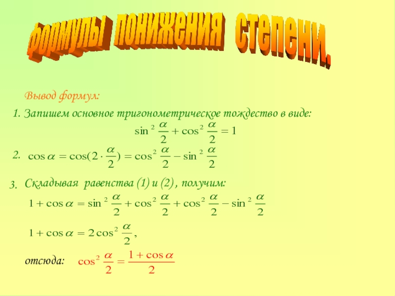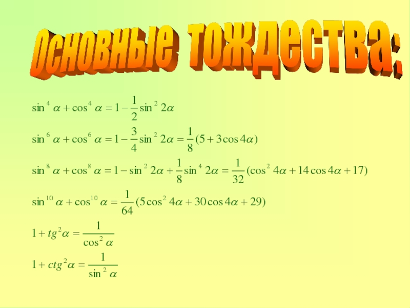 «Основные формулы тригонометрии».