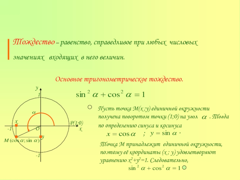 Основное тригонометрическое тождество.
