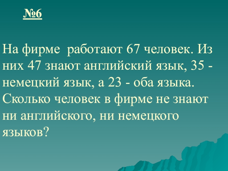 Ответ: 8 человек не знают ни английский, ни немецкий язык.