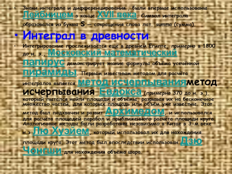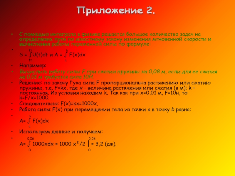 ПРИЛОЖЕНИЕ ИНТЕГРАЛА