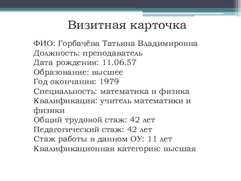 Визитная карточка