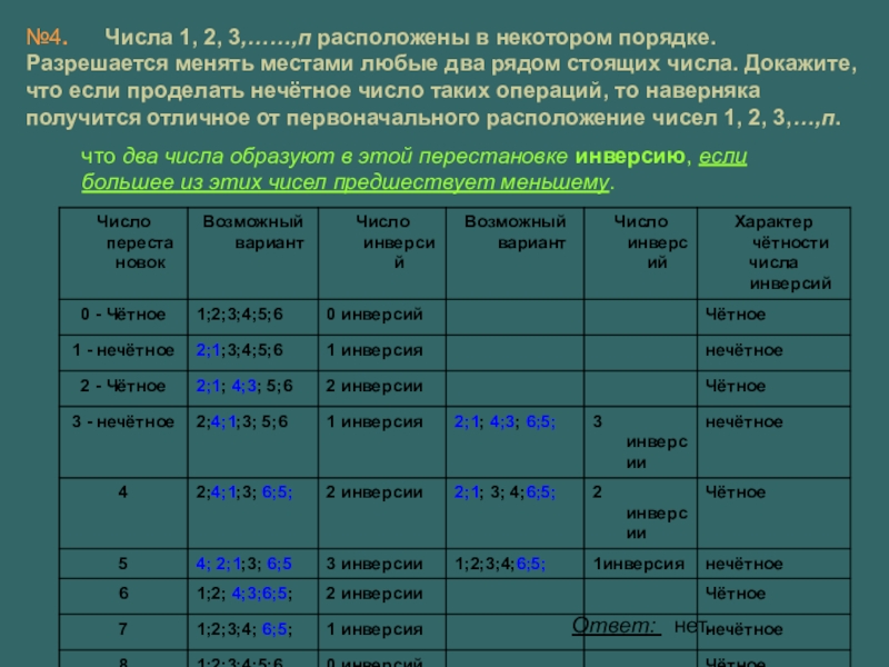 что два числа образуют в этой перестановке инверсию, если большее из этих чисел предшествует меньшему.